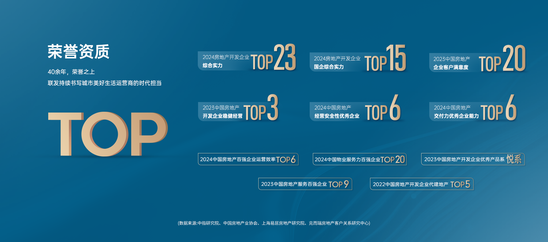 已连续18年上榜中国房地产百强企业,2024年荣获房地产开发企业综合实力第23位。